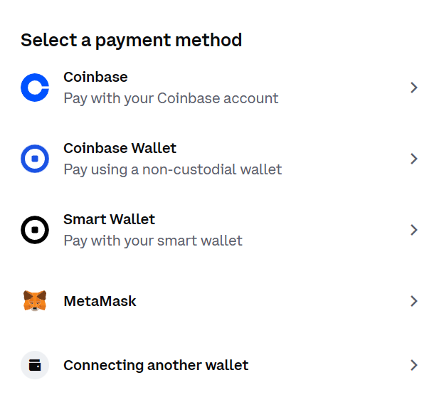 Once redirected, you will see several options, choose Coinbase (Recommended). Then: